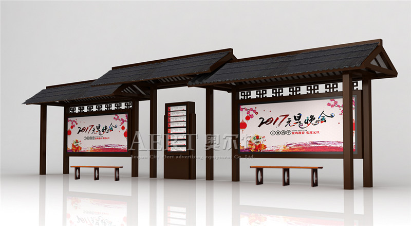由於城市的快速(sù)發展,很多街道的候車亭已經難以適應城市發展需要,為改善公交設施,創建國家旅遊標準(zhǔn)化示(shì)範城市,交(jiāo)通、公交等部門通過多種(zhǒng)措施籌集資金,對全市範圍內不符合城市環境要求(qiú)的候車(chē)亭、公交場(chǎng)站(zhàn)等公交設施進行了升級更新,在景區街道新建具(jù)有曆史(shǐ)韻味的仿古式候(hòu)車亭。宿遷候車亭廠家奧爾(ěr)特廣告設備,不斷創新為江西九江打造全新仿古風格候(hòu)車亭,充(chōng)分體現九江的人文旅遊文化。