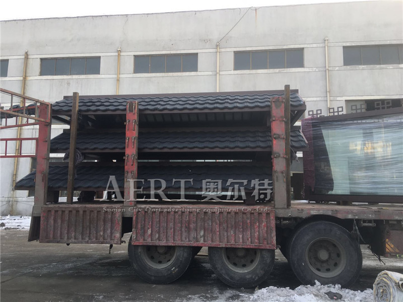[1-28]江西九江2018新款仿古候車(chē)亭(tíng) 金屬采石瓦候車亭裝車發貨