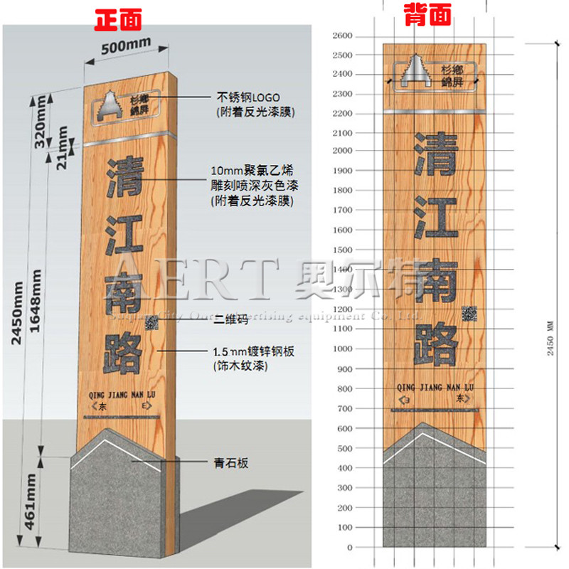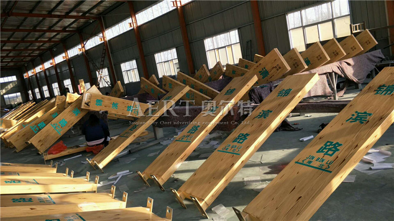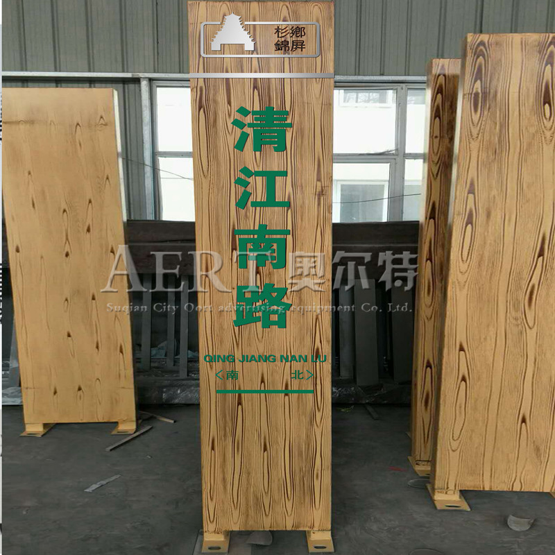 宿遷市奧爾(ěr)特廣告設備限公司路名牌專業生產廠(chǎng)家,用了仿木紋圖案,顯得沉靜優雅(yǎ),展現出一種時空概念上的悠遠感;新(xīn)路牌主體部分為木色,與貴州城市建築主色(sè)調相一致,也容易與周(zhōu)邊環境色彩協調融合。 仿古路名牌 用(yòng)鍍鋅板(bǎn)焊接精打磨 表處理木紋漆(qī) 外貼3M工程級反光膜。