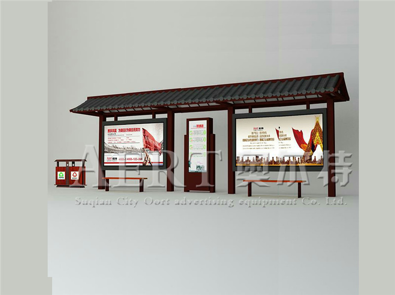 公交候車亭是一座城市基本的(de)公(gōng)共設施之一,這是毫無疑問的,隨著城市日新月異的發展,公共交通也是越來越發(fā)達。很(hěn)多城市比較(jiào)注重前衛的設計與風(fēng)格,潮(cháo)流的候車亭款式也一時間備受關注。但是也有很多城市則注重仿古款式的公交候車亭,追求返璞歸真的設計理念,同時對於有著文化底蘊濃厚的城市來說,仿古款公交候車亭的確是一個(gè)非常適合的選擇。那麽如何選擇仿(fǎng)古款(kuǎn)款式的公交(jiāo)候車亭則成為很多客戶頭(tóu)疼的問題。下麵江蘇榮(róng)大(dà)文化創意有(yǒu)限公(gōng)司就帶您探尋仿古公交(jiāo)候車亭的選購方法及製作工藝。仿古款(kuǎn)公交候車(chē)亭(tíng)一般選用古銅色或者深咖啡色(sè)作為主色調,亭上(shàng)裝飾有鏤空雕花的圖案,頂棚則選用仿古瓦,箱(xiāng)體則采用了(le)鋼化玻璃,外觀(guān)采(cǎi)用了(le)高溫靜電噴塑處理(lǐ),雖然解決了生鏽腐(fǔ)蝕難題,但價(jià)格較(jiào)高,外觀比較單調,不鏽鋼本色比較容易髒,而(ér)且有光汙(wū)染問題,在強(qiáng)光下很刺眼